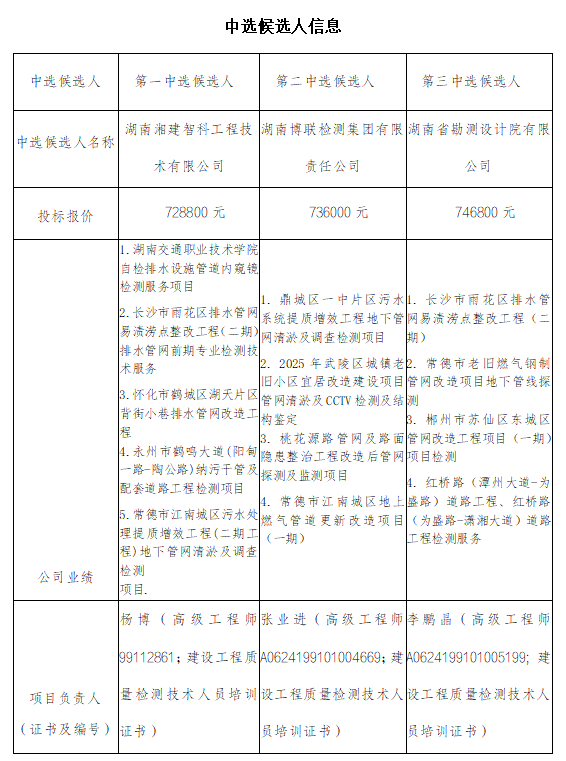 衡陽紡織機械廠地塊地下管網盲探及檢測工程公開比選中選候選人公示