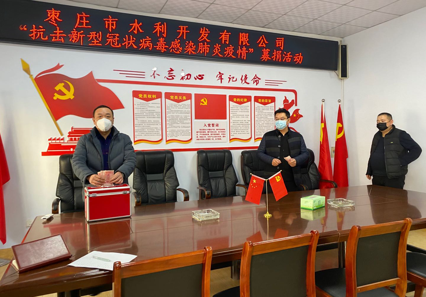 疫情無情,人間有愛。為支持新冠肺炎疫情防控工作,棗莊市水利開發(fā)有限公司執(zhí)行董事、總經(jīng)理岳磊攜公司全體黨員干部職工,于3月2日組織開展了抗擊疫情獻(xiàn)愛心捐款活動(dòng),以捐款的方式支援疫情防控工作,積極為抗擊疫情貢獻(xiàn)力量。